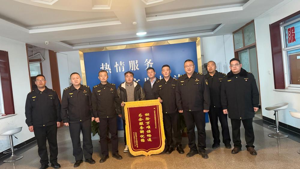 在交通执法人员的全程护航下,载有风力发电叶片的大件运输车辆安全、准时抵达赵县国辉250MW风力发电项目指定地点,为项目顺利推进提供了有力保障。为表达感谢,上海蓬勃大件运输有限公司专程向赵县交通运输局综合行政执法大队送来锦旗,对县局大队快速响应、高效处置、尽职尽责的工作作风给予高度评价。