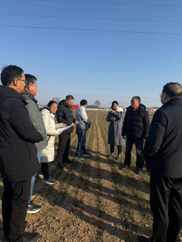 2026年2月7日全国农技推广服务中心首席专家杜森、国家小麦产业体系专家省旱作所李科江和省、市小麦专家到赵县诚诺家庭农场调研小麦越冬苗情、墒情,并对小麦分类管理提出宝贵意见。今年小麦越冬期间气温较高,虽然越冬时苗龄小,分蘖少,但越冬期增长量较大,专家建议在管理上应采取春季喷施植物生长调节剂或叶面肥促进小麦生长,并适时浇水促分蘖成穗,有效促进苗情转化升级。