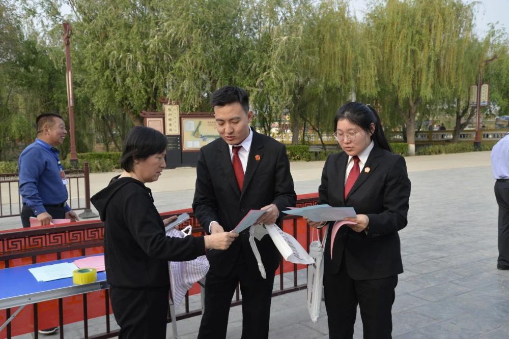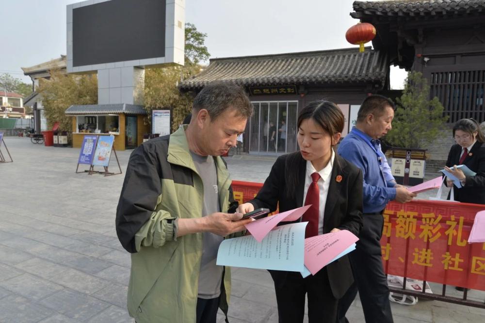 近日,大石桥法庭办案团队、大石桥法庭党支部党员、旅游巡回法庭特邀调解员在赵州桥景区门口开展了以“抵制高额彩礼,倡导文明新风”为主题的普法宣传活动。