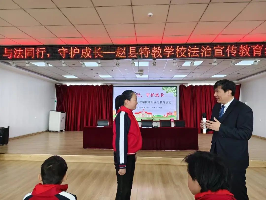 赵县特殊教育学校邀请该校法治副校长姚海生律师为全体师生进行了“法治进校园”专题宣讲。姚海生律师结合特殊教育学校的实际情况,用通俗易懂的语言和简洁生动的案例,讲解了《中华人民共和国未成年人保护法》《中华人民共和国预防未成年人犯罪法》等法律法规。他特别强调了预防校园欺凌、网络安全等与儿童少年密切相关的法律问题,引导学生树立正确的法治观念,学会运用法律来保护自己。