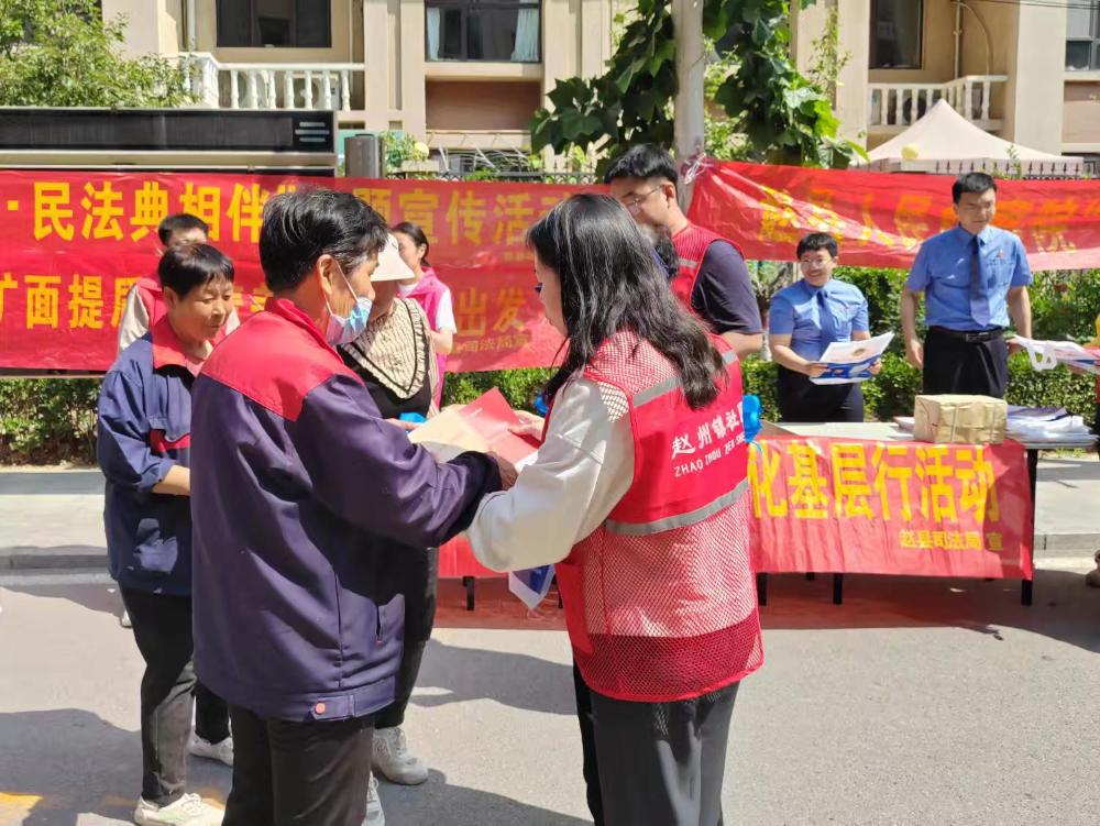 此次活动共发放法治宣传资料600余份,解答群众法律咨询20余人次,进一步扩大了《中华人民共和国民法典》知晓度,丰富了居民的法治文化生活,切实让民法典走到群众身边、走进群众心里。下一步,赵县司法局将不断创新普法宣传形式,开展形式多样的民法典宣传活动,积极营造尊法、学法、守法、用法的良好法治氛围。