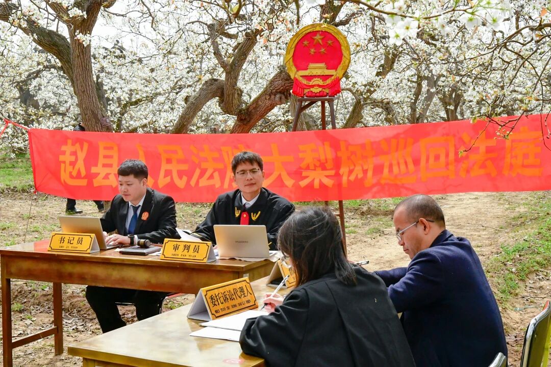 赵县法院:梨白如雪,法徽闪耀!看,这堂设在田埂上的法治课有多生动