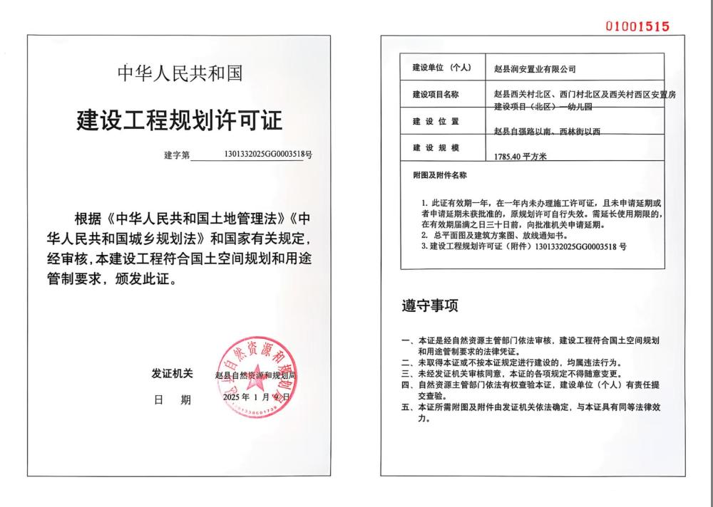 赵县润安置业有限公司赵县西关村北区、西门村北区及西关村西区安置房建设项目(北区)—幼儿园建设工程规划批后公告