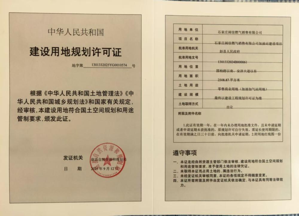 石家庄阔佳燃气销售有限公司加油站建设项目建设用地规划批后公告