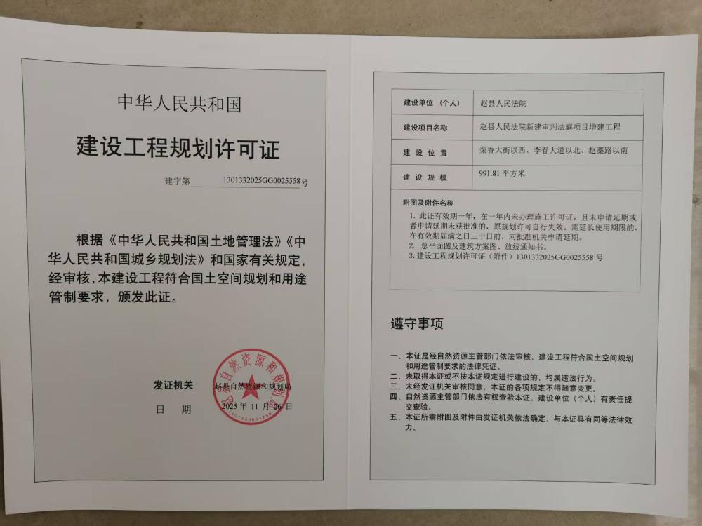 赵县人民法院赵县人民法院新建审判法庭项目增建工程建设工程规划许可证