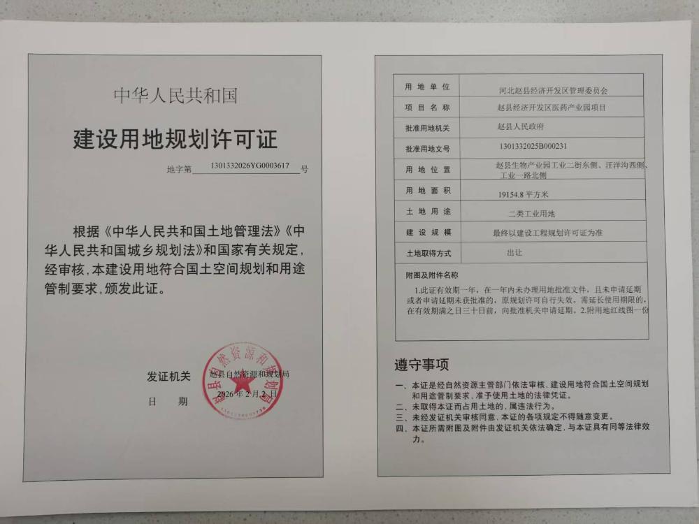 赵县经济开发区医药产业园项目建设用地规划批后公告