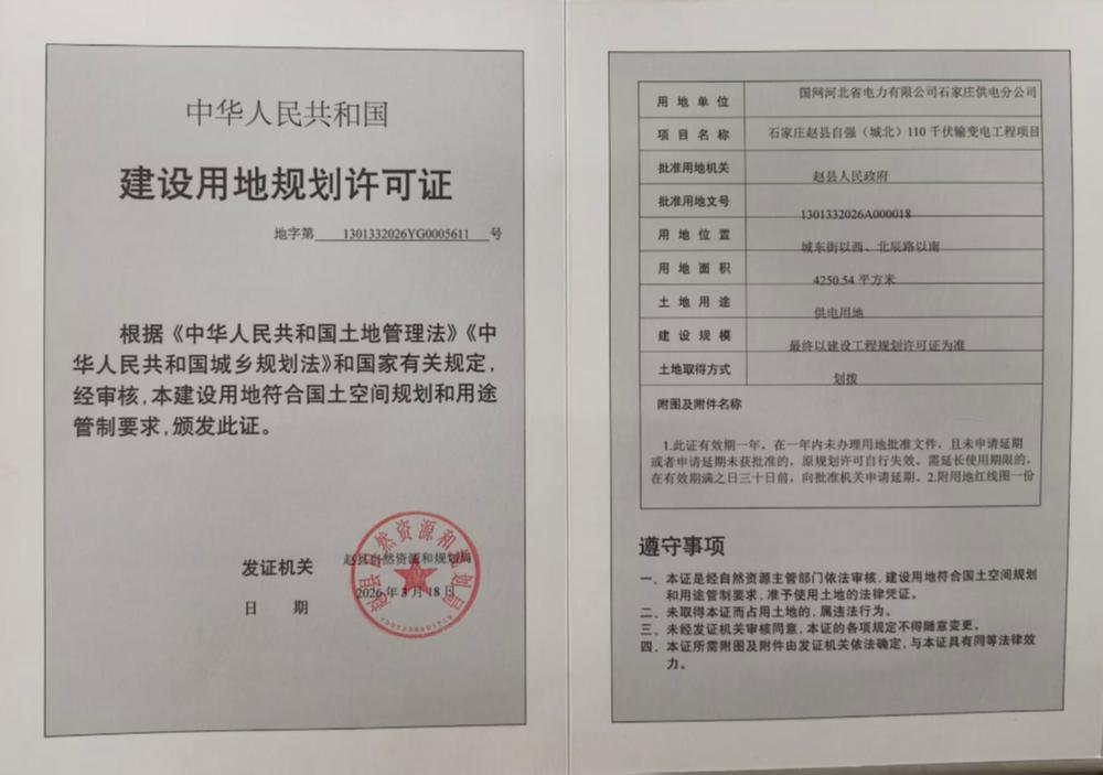 石家庄赵县自强(城北)110千伏输变电工程项目 |