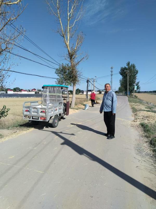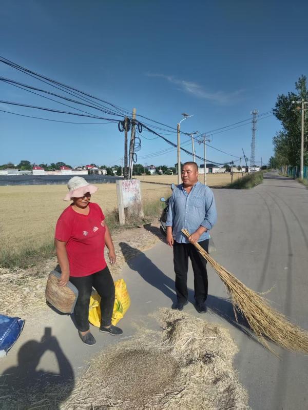 图3:新寨店镇北轮城村河长巴贤军在帮助农户收拾小麦的同时对农户进行批评教育