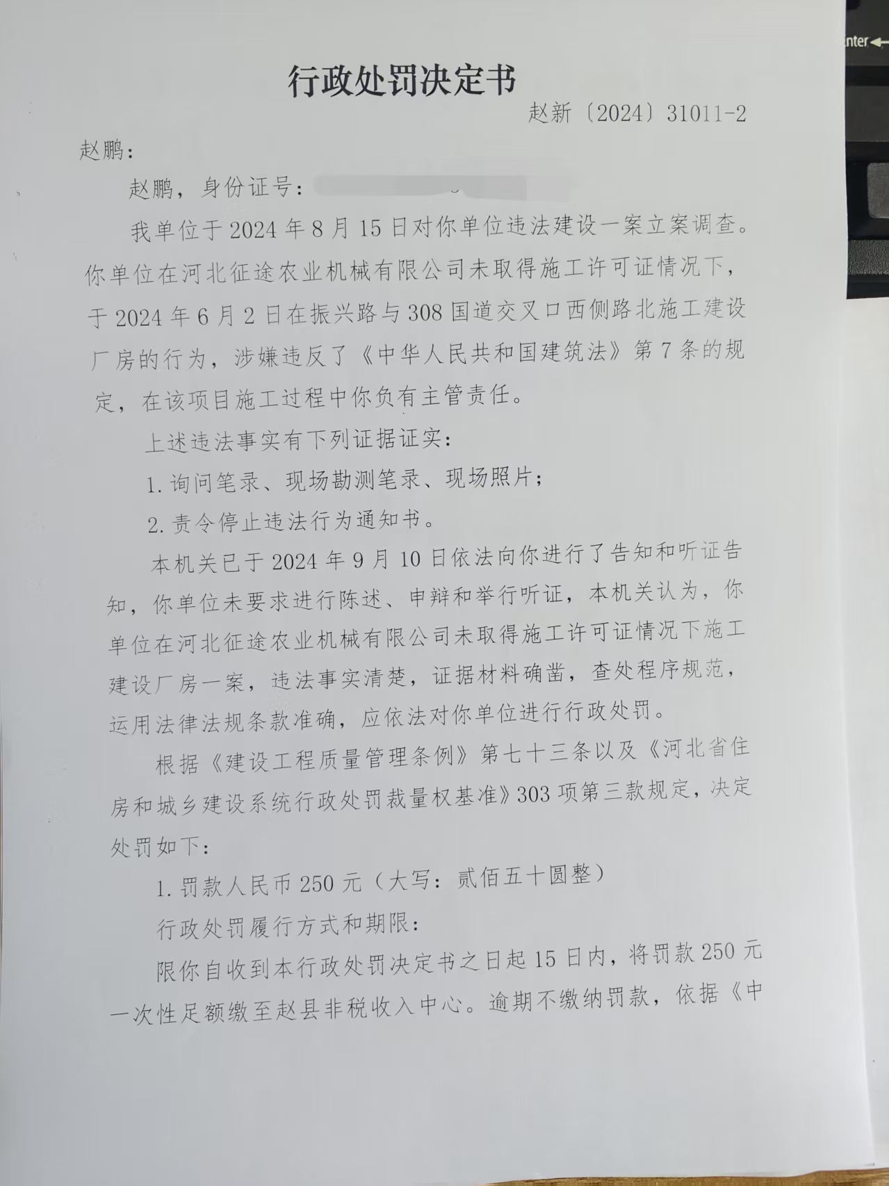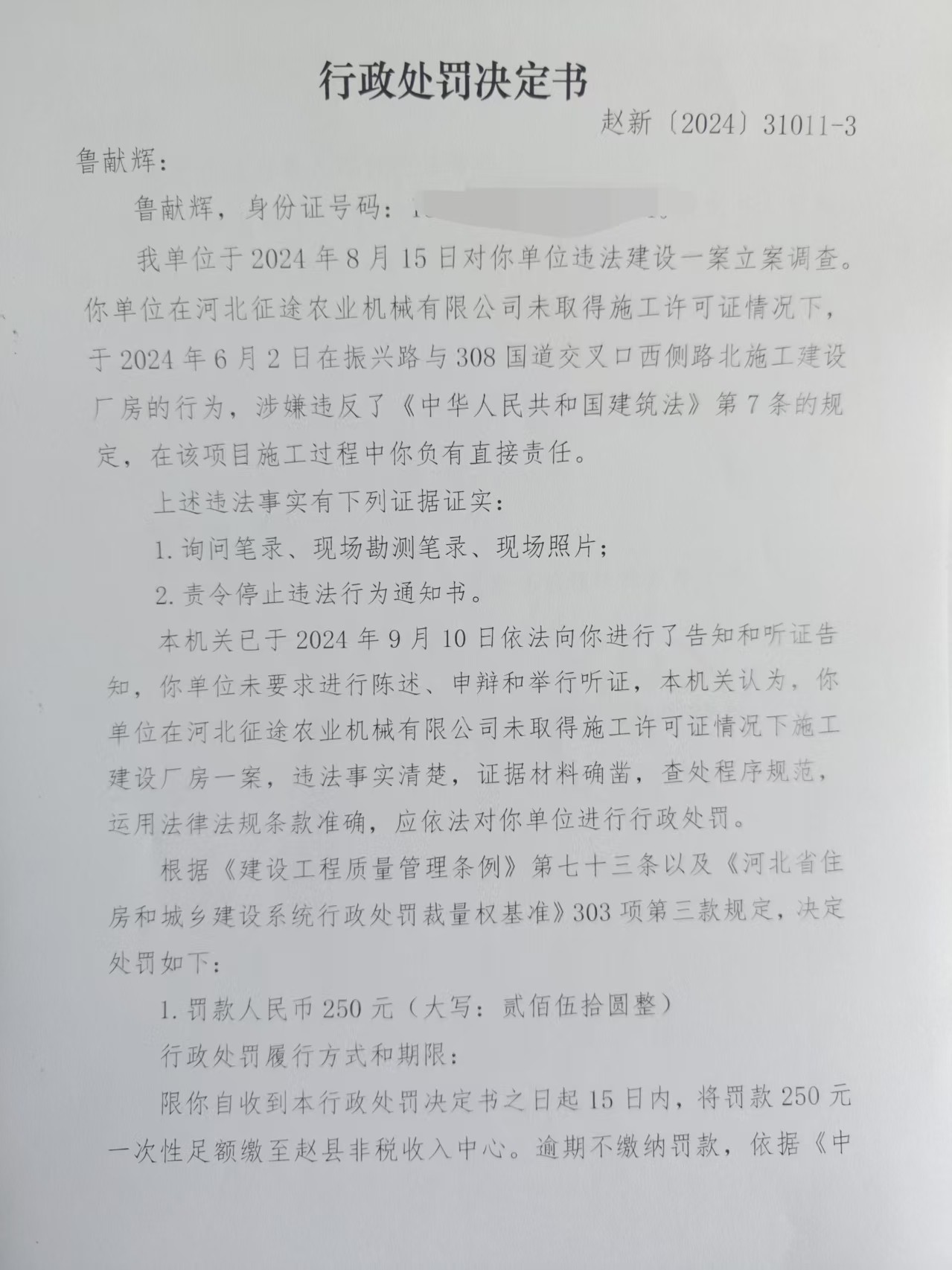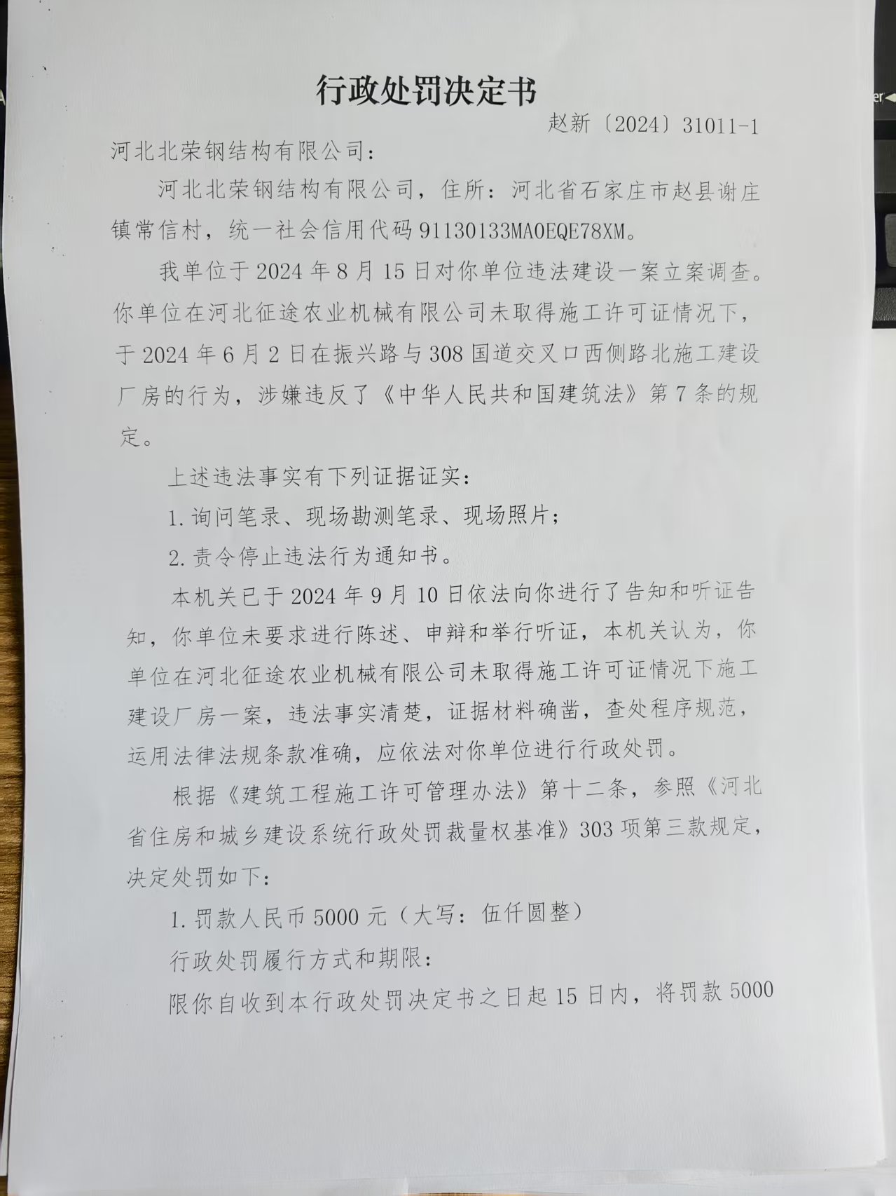 河北北荣钢结构有限公司未批先建案