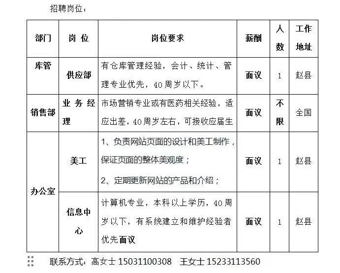 任职资格:男女不限,年龄18-50 岁,身体健康。