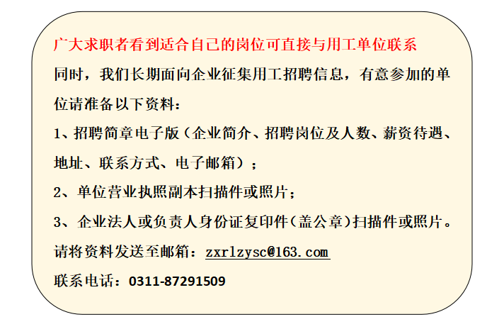 岗位要求:身体健康、素质佳、有责任心、有良好的服务意识、有相关岗位工作经验者优先录用。