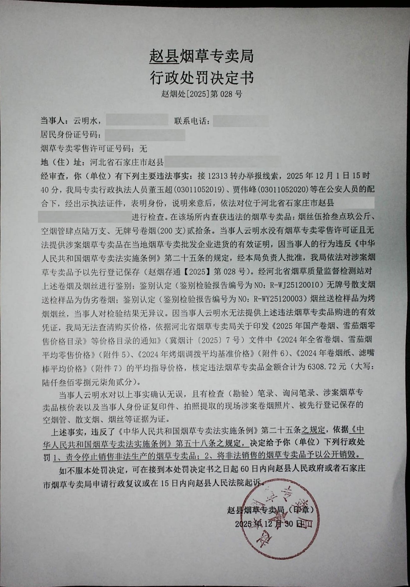 赵烟处[2025]第028号行政处罚决定书公示