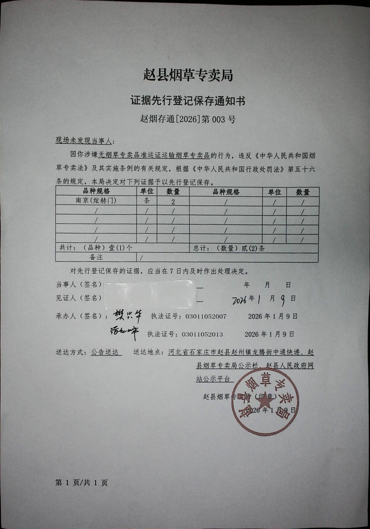 赵烟存通[2026]第003号