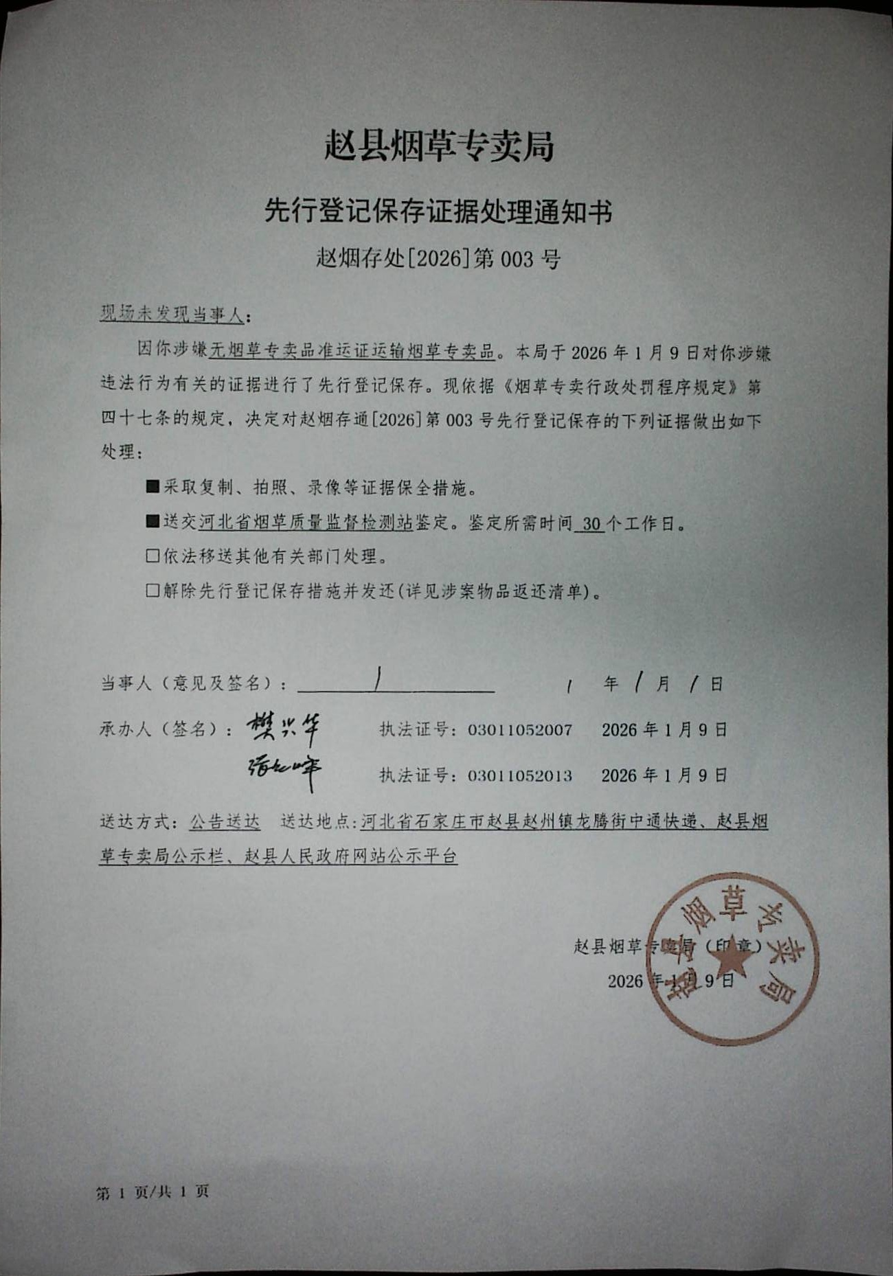 赵烟存处[2026]第003号