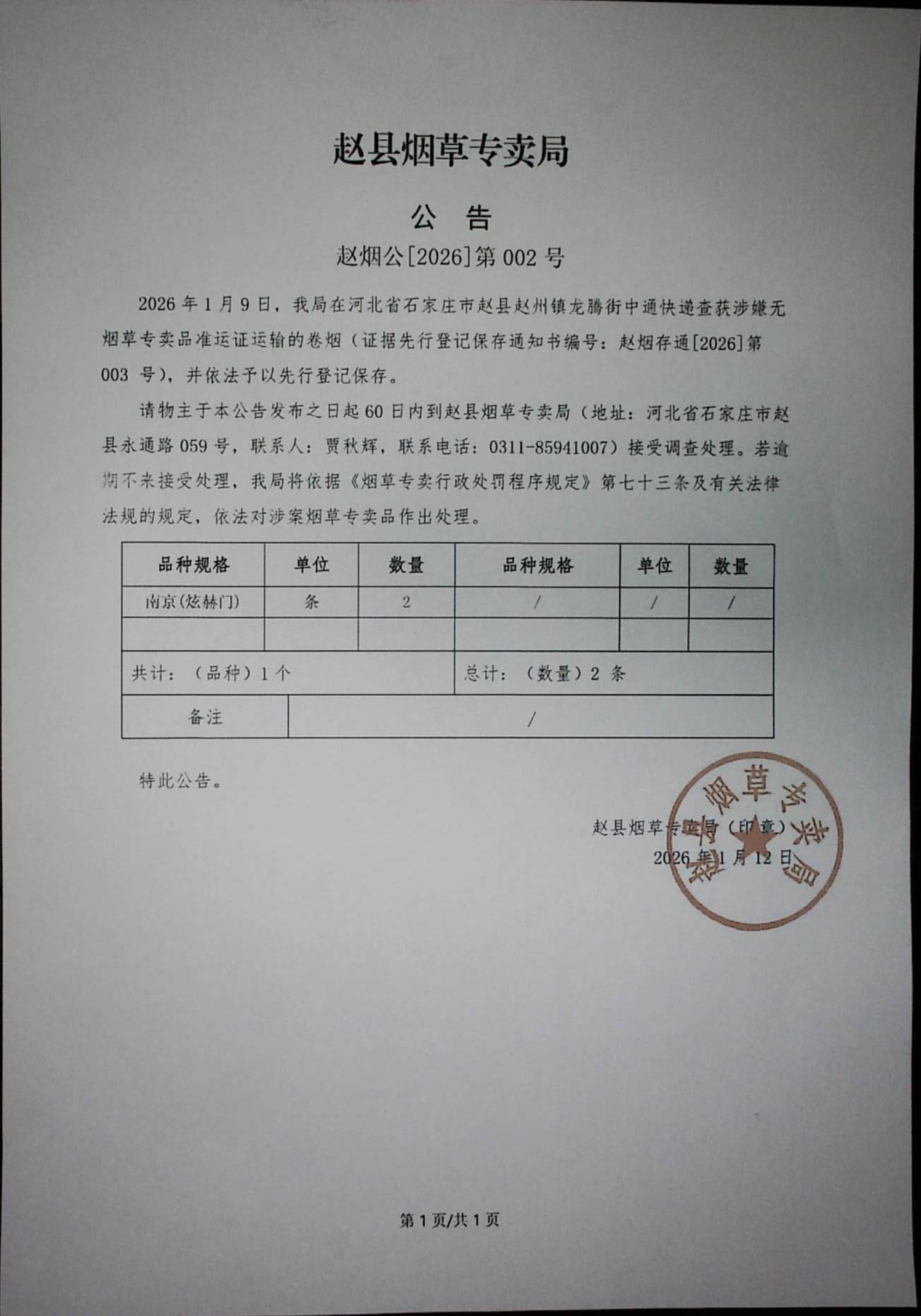 赵烟公[2026]第002号