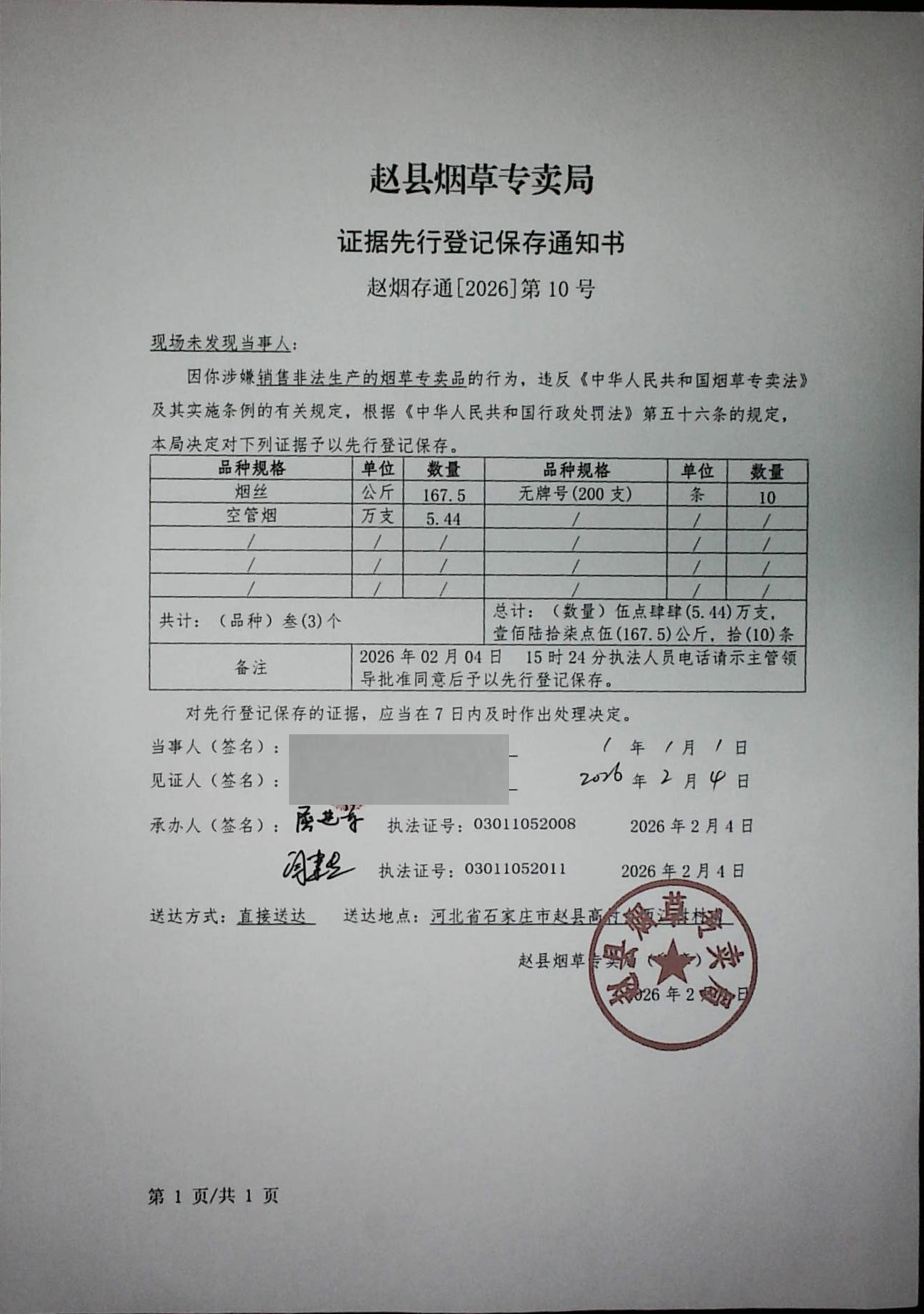 证据先行登记保存通知书