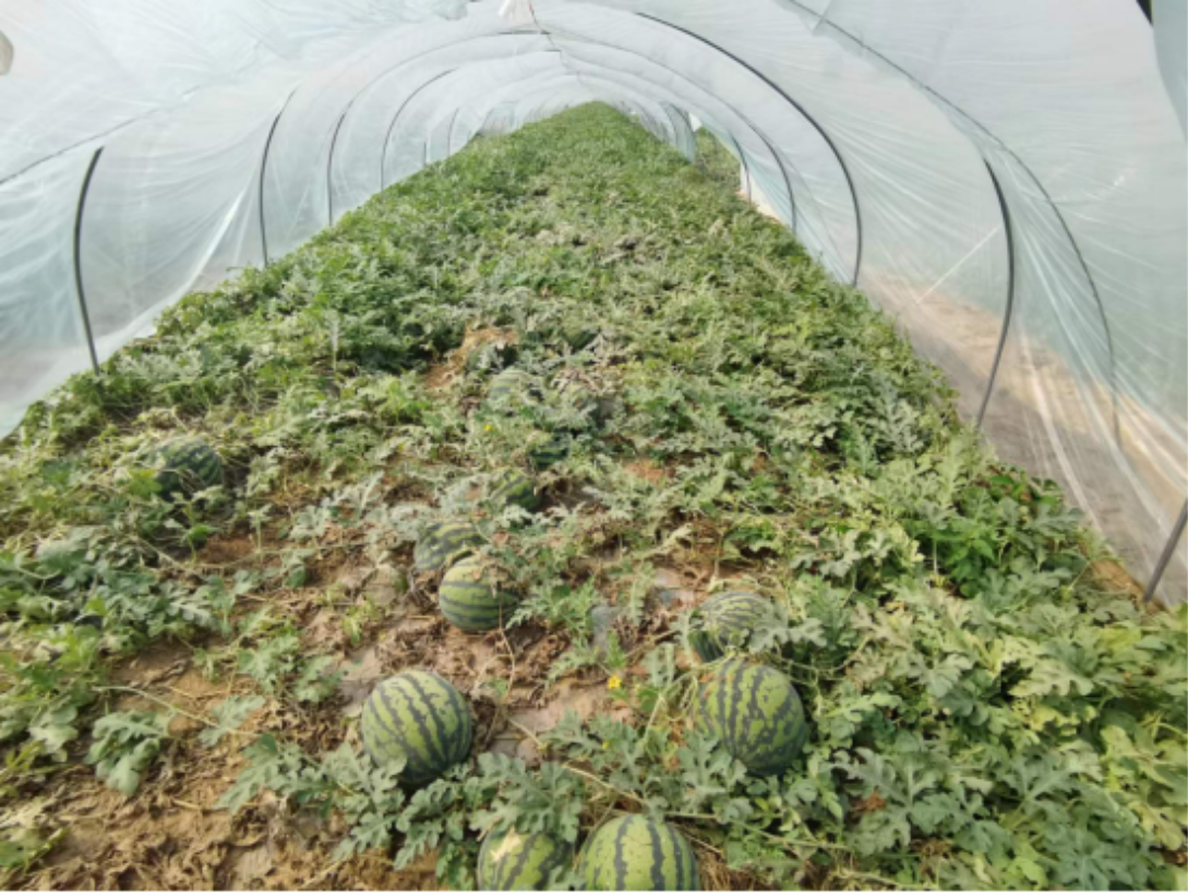 瓜果飘香,硕果累累。沟岸村西瓜中棚里满眼绿意,瓜蔓之间藏着一个个圆滚滚的大西瓜。瓜农们一边收拾杂草,一边聊家常,盼着今年西瓜能卖个好价钱。据瓜农介绍,棚室西瓜比露天西瓜更早成熟,价格也相对高一些。作为西瓜种植大村,沟岸村种植西瓜已有40余年,种植技术成熟,西瓜口感好,品质高。