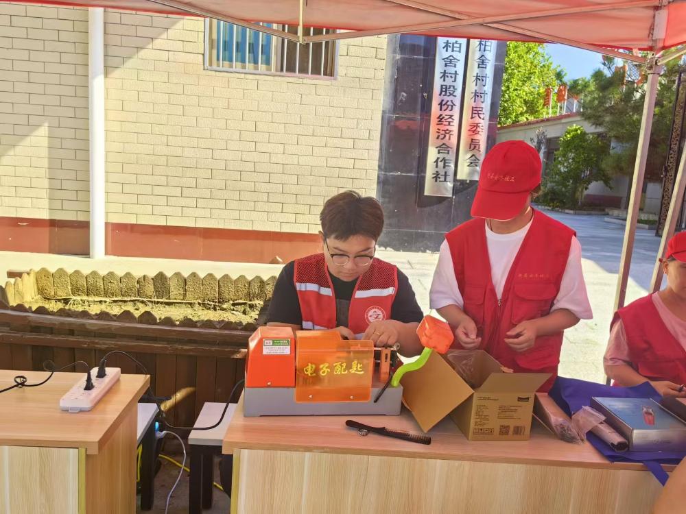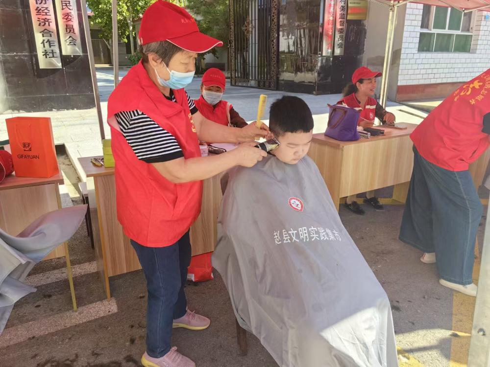 志愿服务活动免费给村民们提供义诊、理发、配钥匙、磨刀等多项暖心服务。一个个摊位前热闹非凡,志愿者一边为居民们提供服务,一边聊着家常。