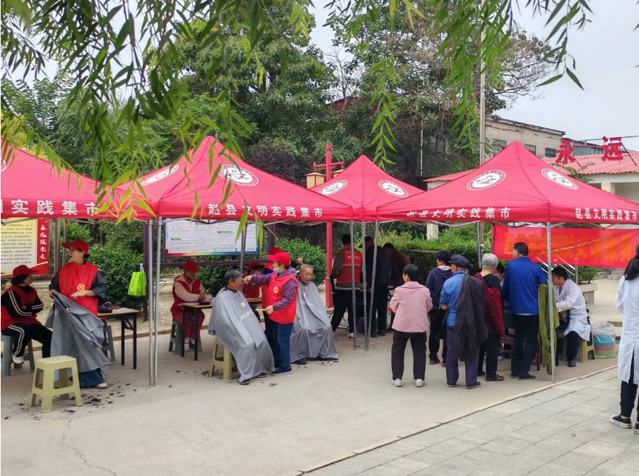 在宣传部、县新时代文明实践中心的支持下,赵县“小修小补”文明实践项目走进北王里镇烟家寨村集市,为群众送上贴心、暖心的服务。