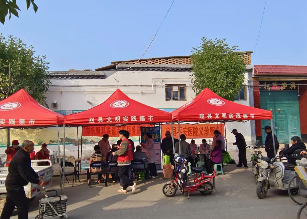 10月29日上午,赵县南柏舍镇联合县委宣传部和赵县新时代文明实践中心在南柏舍镇曹柏舍村集市开展“小修小补”文明实践活动。