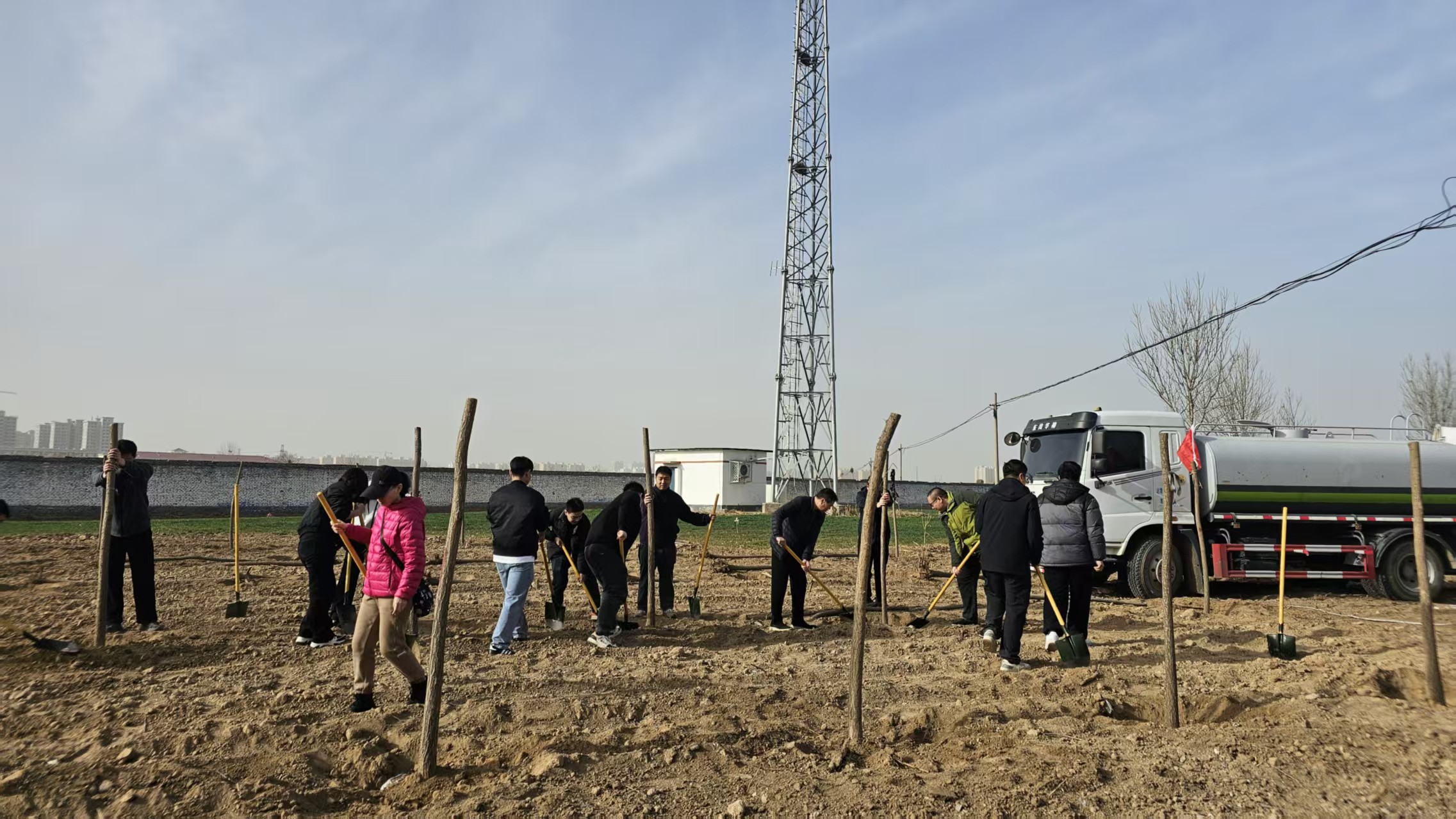 在植树活动现场,三人一组、五人一群,大家分工协作,配合默契。机关干部热情洋溢、干劲十足、挥锹铲土、默契配合,有条不紊地完成每一道种植工序,展现出良好的精神风貌和责任担当。
