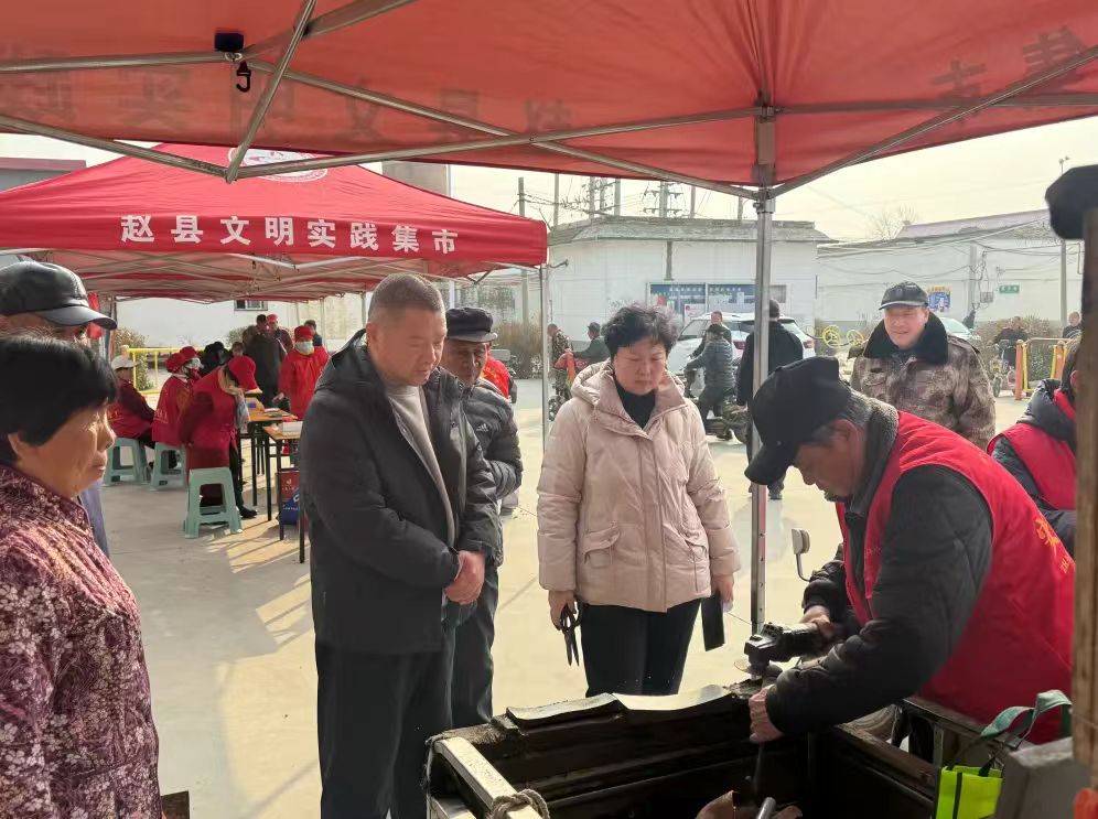 3月10日,恰逢曹谷疃村集市,赵县新时代文明实践中心将“小修小补”便民服务车开进新寨店镇,在曹谷疃村广场中支起“惠民服务区”。