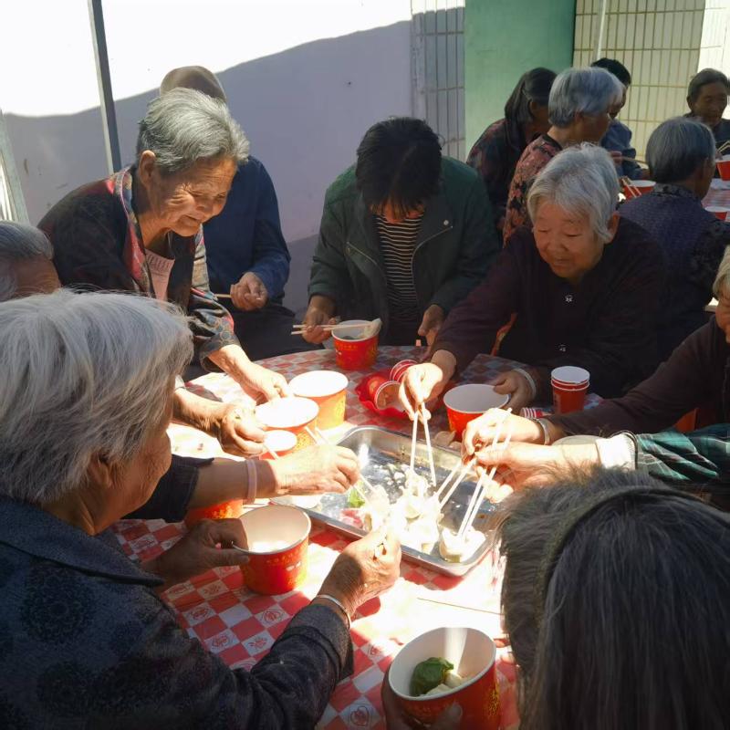 活动现场,志愿者们分工明确、热情满满。有人洗菜剁馅、有人和面擀皮,大家一边唠着家常,一边忙碌着手中的活计。不一会儿,形态各异的饺子摆满了案板。老人们围坐在一起,品尝着一碗碗热气腾腾的饺子,脸上洋溢着幸福的笑容。“这饺子香,心里更暖,感谢村里想着我们这些老人!”75岁的侯大爷开心地说到。