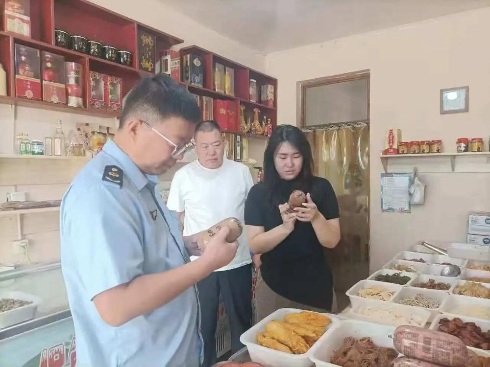 此次行动以超市、便利店、餐饮店等群众高频消费场所为重点,按照“查隐患、强宣传、促规范”主线展开。在执法检查环节,工作人员严格核查经营主体的营业执照、食品经营许可证及从业人员健康证,确保资质合法有效。针对月饼、肉制品、乳制品、粮油等节日热销品类,逐一核对生产日期、保质期及储存条件,细致查验进货台账与索证索票情况,严防“三无” 食品、过期食品流入市场。在餐饮店铺后厨,执法人员重点检查食材分区存放、餐具消毒记录及冷藏设备温度,对发现的卫生死角、台账记录不规范等问题现场反馈,责令限期整改并建立跟踪复查机制。