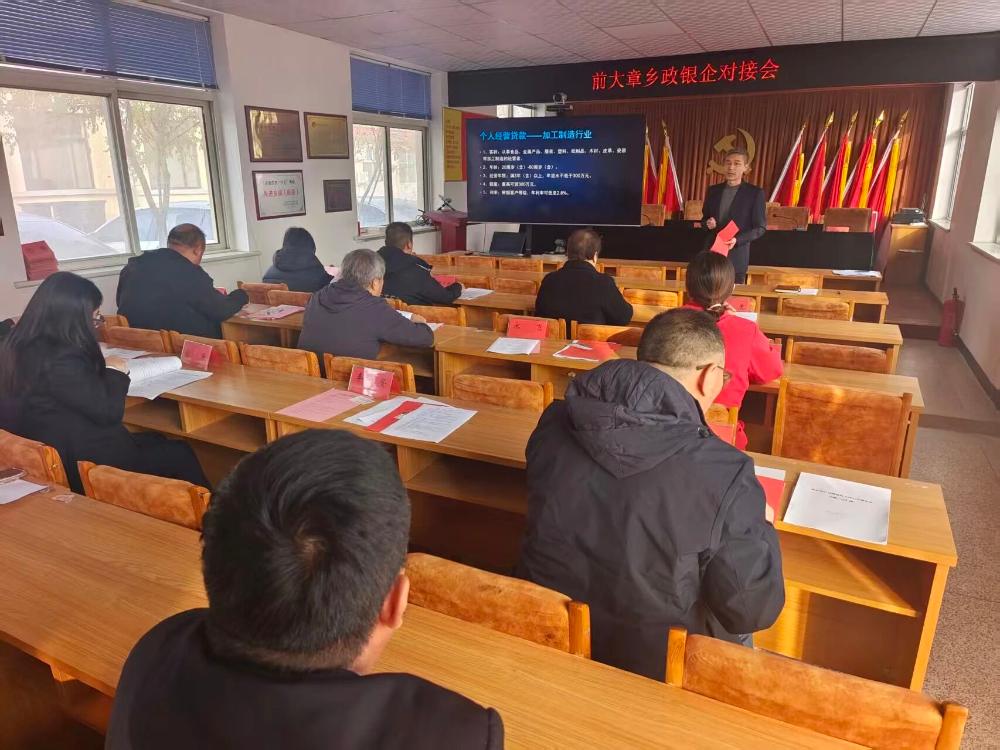 10月31日,前大章乡召开政银企对接会。会议邀请赵县农业银行、赵县邮储银行、赵县信用联社等3家金融机构,以及辖区内部分企业和社会组织参加会议。