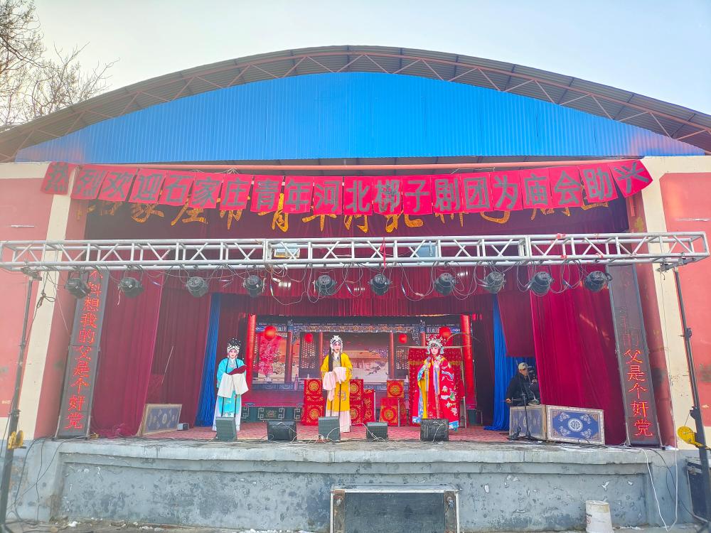 庙会现场人头攒动,热闹非凡。刚飘落的薄雪为古朴的戏台覆上一层洁白的霜花,凛冽的寒风却丝毫挡不住群众的热情。来自石家庄青年河北梆子剧团的演员们身着精致戏服,粉墨登场,轮番演绎经典剧目。婉转悠扬的唱腔、惟妙惟肖的身段、细腻传神的表演,将一个个鲜活的戏曲角色刻画得淋漓尽致,深深牵动着台下观众的心弦。戏台之下,村民们里三层外三层围得水泄不通,白发苍苍的老人们眯着眼睛听得如痴如醉,时不时跟着旋律轻轻哼唱;活泼好动的孩子们围在戏台边嬉笑打闹,被精彩的表演吸引驻足。现场掌声、叫好声此起彼伏,欢声笑语回荡在村庄的上空,勾勒出一幅和谐温馨的乡村文化图景。