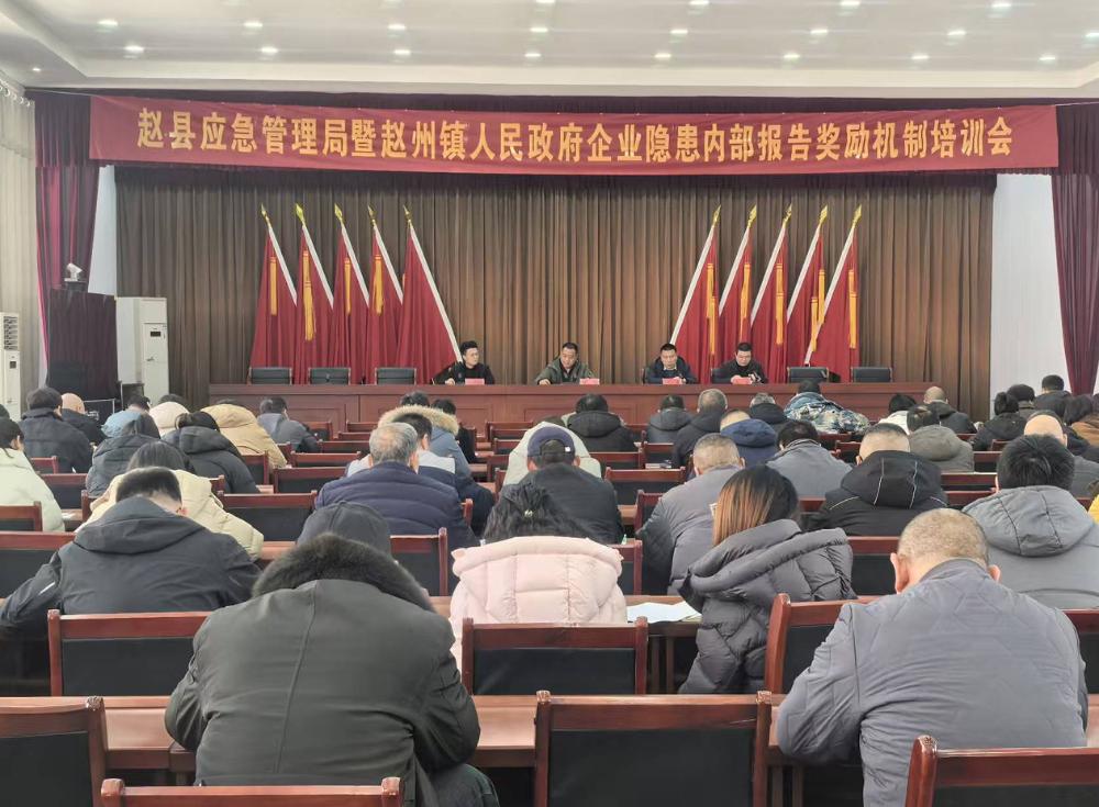 12月25日,赵州镇联合赵县应急管理局组织召开企业隐患内部报告奖励机制培训会,辖区重点企业负责人、安全管理人员参加会议。