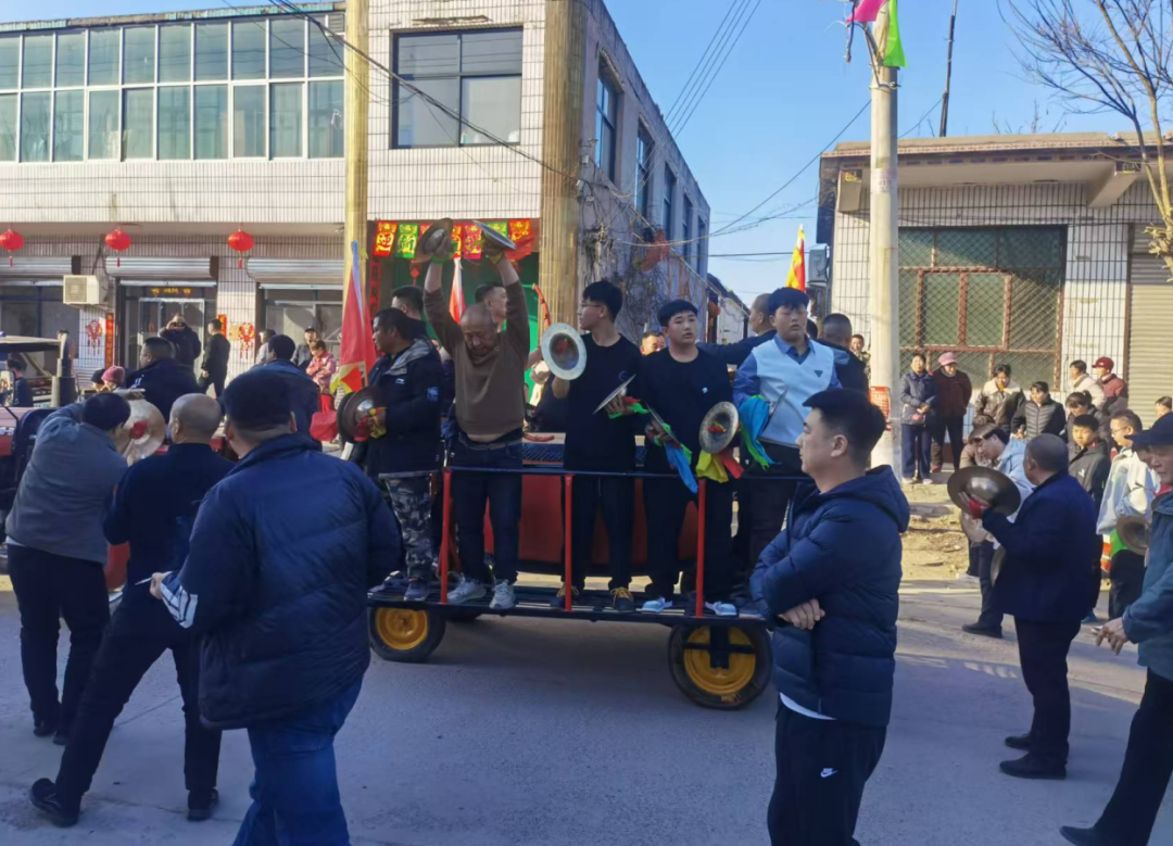 活动现场,四村锣鼓队在固德村集结,游街队伍浩浩荡荡,队员个个精神抖擞。鼓槌挥舞间鼓声如雷、气势磅礴,时而高亢激越,时而沉稳厚重,锣钹齐鸣,节奏铿锵,响彻街巷。队伍穿行于村内主要街道,所到之处村民纷纷出门观看,不少人自发跟随,鼓掌助兴、拍照记录。孩子们穿梭嬉戏,老人们笑容洋溢,掌声喝彩声此起彼伏,浓浓年味与暖暖乡情交织。