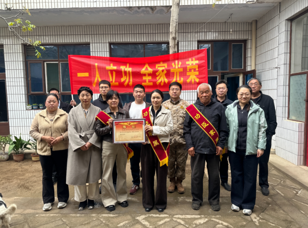 谢庄镇工作人员分别走进三名现役军人的家中,将立功喜报与奖励金郑重送到家属手中,让军营的荣耀照亮家乡每一个角落,让英雄的风采温暖每一位群众的心。