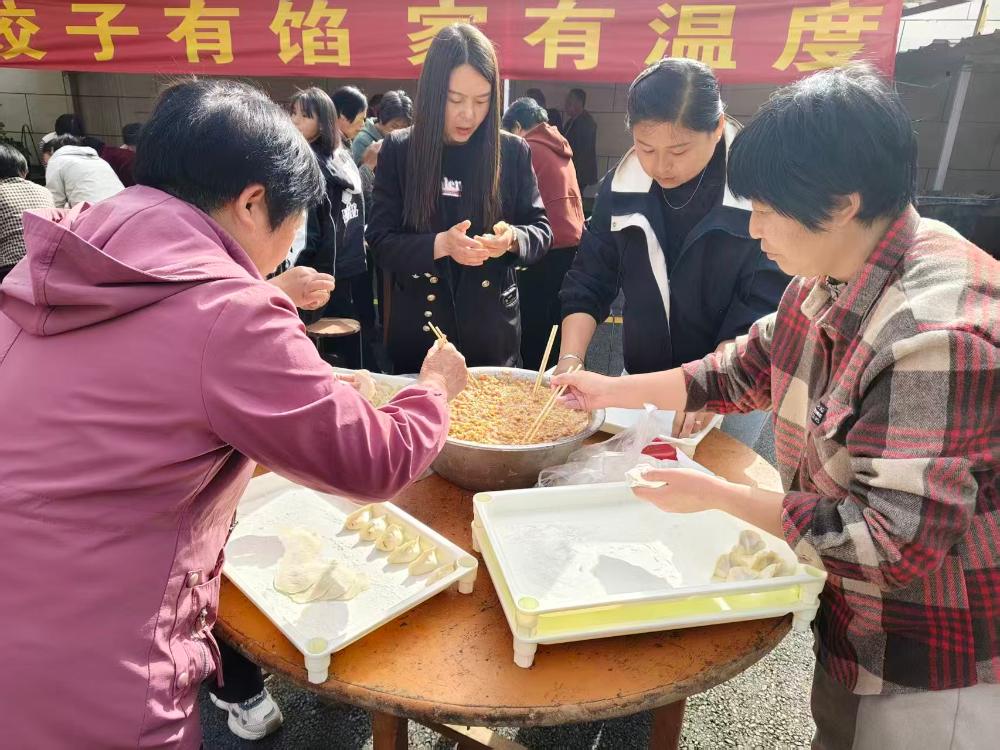 活动当天,村里的党员干部、志愿者们早早来到活动现场,分工协作、忙而不乱。大家围在一起,和面、擀皮、包饺子,手法娴熟,配合默契,不一会儿,一个个饱满圆润的饺子整齐排列开来。现场气氛热烈融洽,志愿者们与老人亲切交谈,拉家常、问冷暖,倾听老人讲述过往故事,欢声笑语萦绕在现场,让平日里安静的村落充满了温情。