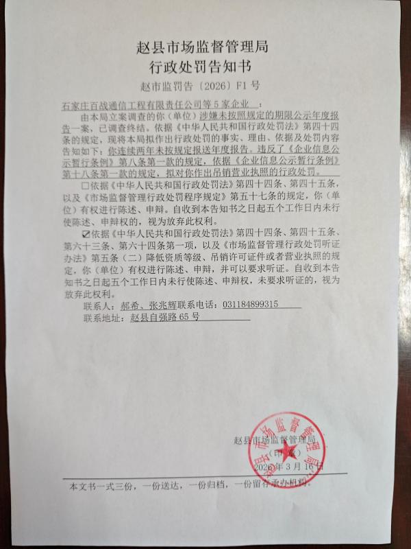 赵县市场监督管理局行政处罚告知书赵市监罚告〔2026〕F1号