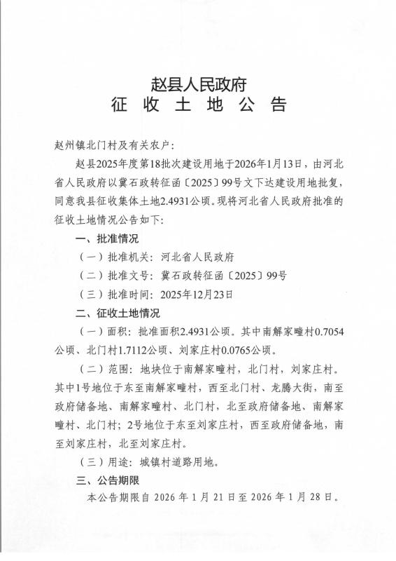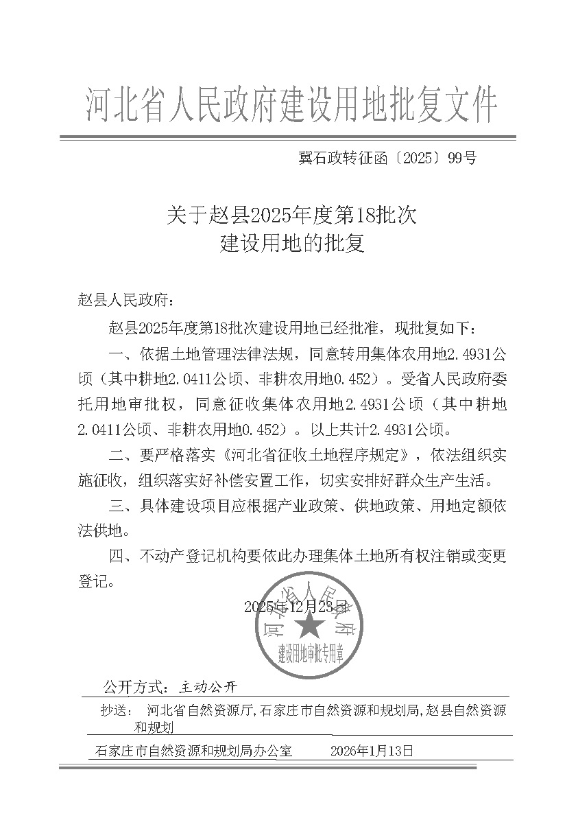 2025年度第18批次建设用地征收土地公告、农用地转用方案及批复文件