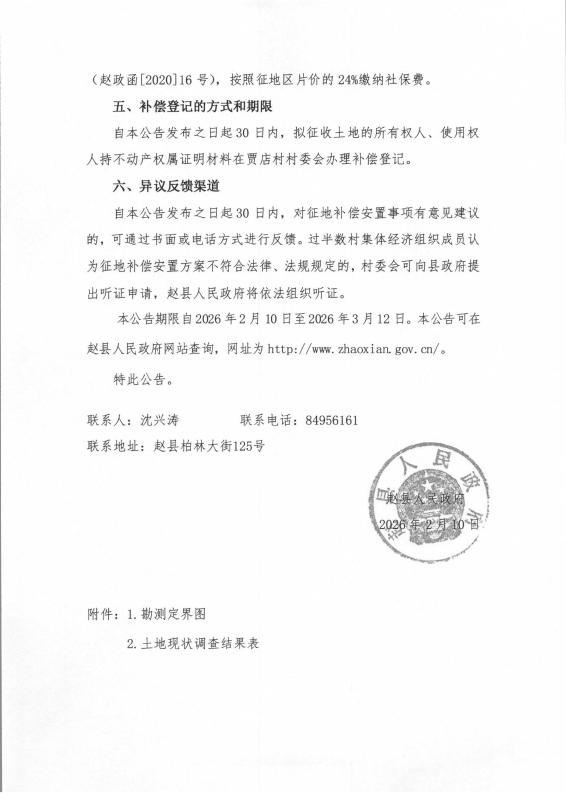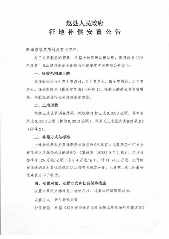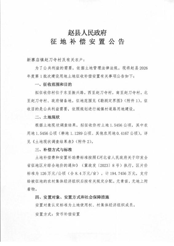 赵县2026年度第1批次建设用地征地补偿安置公告