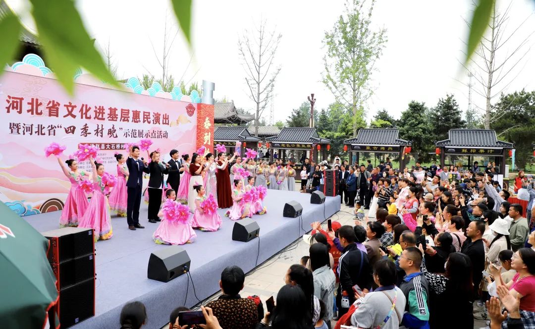 为深入学习贯彻习近平文化思想,进一步做好“四季村晚”活动,持续擦亮“村晚”品牌,集聚乡村资源,促进文旅融合发展,激发新时代乡村振兴的文化活力。5月4日上午9:30,在河北省文化和旅游厅指导下,由石家庄市文化广电和旅游局主办,石家庄市群众艺术馆、赵县文化广电体育和旅游局承办的河北省“四季村晚”示范展示点活动在赵州桥景区百戏楼广场隆重举办,唱响大地欢歌、共享文化盛宴。