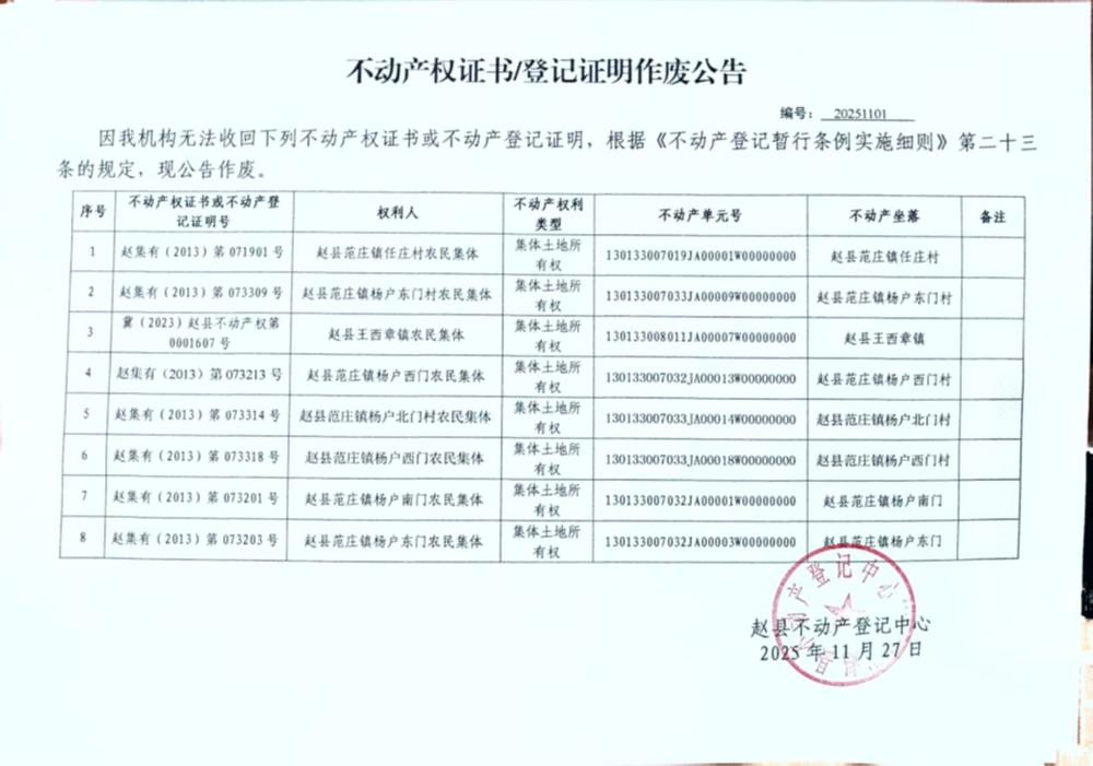 不动产证遗失声明、不动产权证书或登记证明作废公告