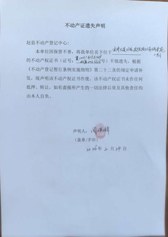 不动产证遗失声明